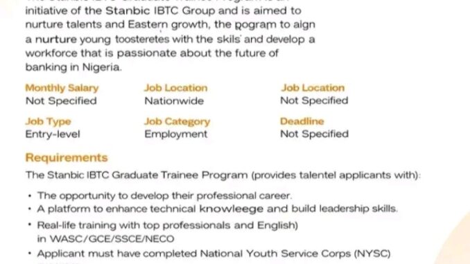 Apply for Stanbic IBTC Graduate Trainee Programme 2026