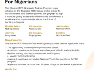 Apply for Stanbic IBTC Graduate Trainee Programme 2026 The Stanbic IBTC Holdings is inviting applications from suitably qualified candidates for it’s 2026 Graduate Trainee Programme. This provides a very strong avenue through which fresh graduates […]
